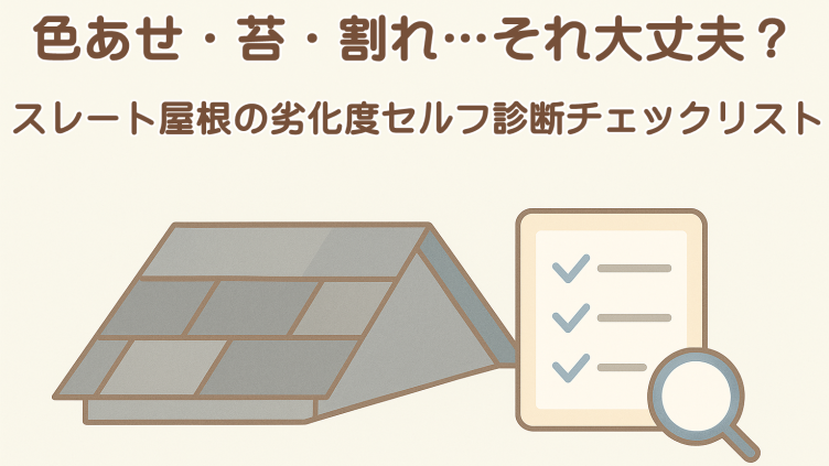 色あせ・苔・割れなど、スレート屋根の劣化症状をセルフ診断できるチェックリストを掲載。様子見でよいケースと点検が必要な判断ラインをプロが分かりやすく解説します。